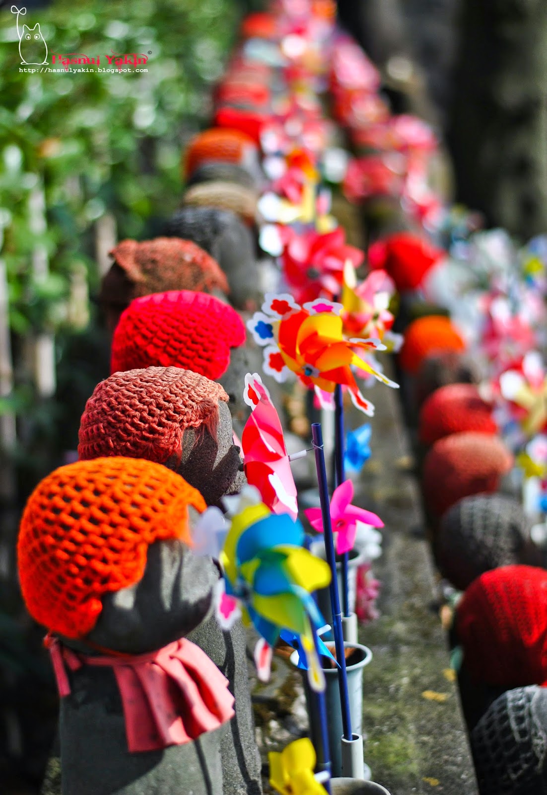 Terdapat ratusan patung-patung Jizo di tanah perkuburan kanak-kanak berhampiran Zojo-ji Shrine di Tokyo.Selain dihiasi dengan permainan kanak-kanak seperti pinwheels dan juga bunga-bunga, hampir keseluruhan patung Jizo ini juga dihiasi dengan baju-baju hiasan serta napkin yang cukup berwarna-warni. Saya juga mendapati terdapat ukiran pada bahagian belakang di sesetengah patung-patung Jizo ini dan besar kemungkinan ianya adalah nama kanak-kanak yang meninggal tersebut.